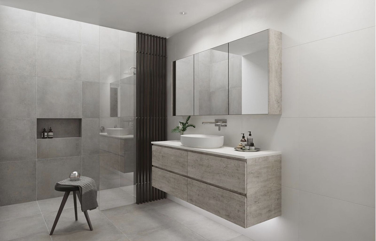 - Bathroom walls with COVERLAM plates (GRESPANIA) 2700X1200 (Color to choose)
