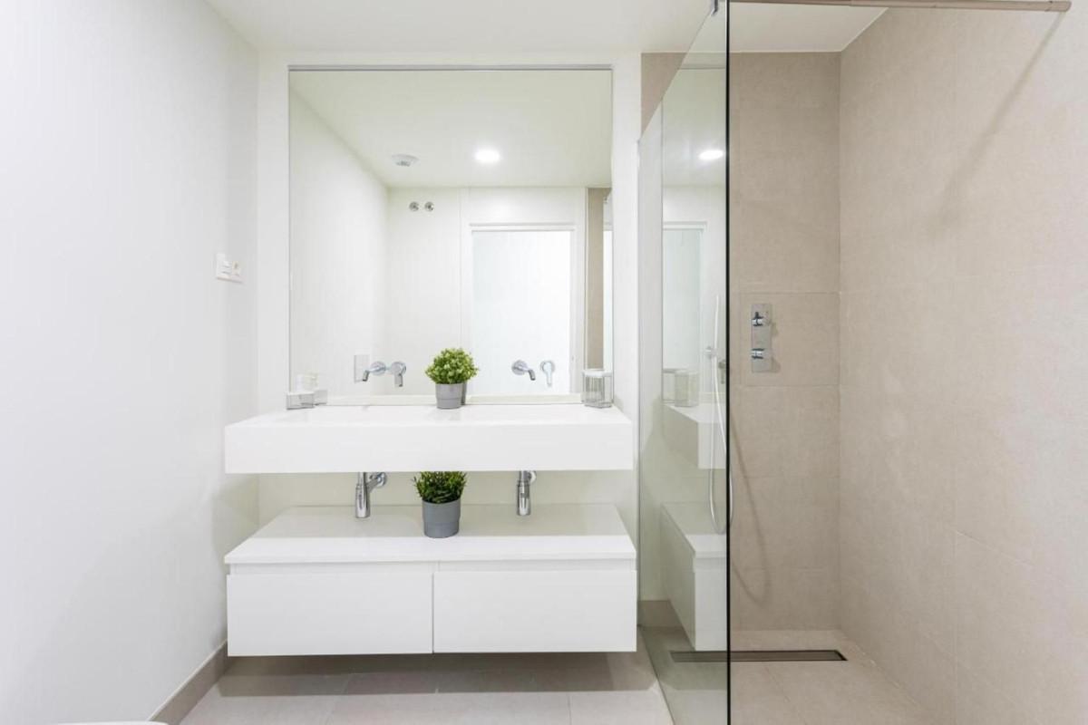 Welcome to One Residences, Calanova Golf, Mijas. This is a unique opportunity to purchase a spacious ground floor apartment with private garden and pool, and panoramic golf, sea and mountains views, and perfect south orientation. Ample living room with open plan a fully fitted kitted kitchen and direct access to an ample, covered terrace and a private garden with pool and breathtaking views over the Calanova Golf Course. Two bedrooms, each featuring its own bathroom and direct access to the mentioned terrace and private garden, a guest toilet and an independent laundry room. Underfloor heating throughout the apartment, a home automation system, etc. are some of the property features. Two underground parking spaces and a storage room are also included in the sale price.