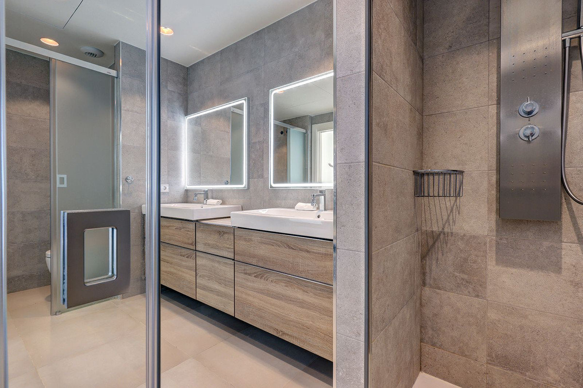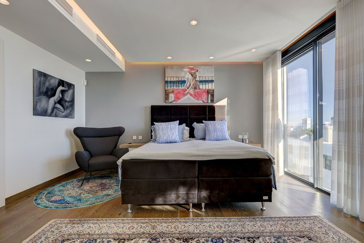 This one-of-a-kind 5-bedroom duplex penthouse in Santa Barbara Heights, Mijas Costa, offers an unparalleled lifestyle of luxury and exclusivity. Spanning over three apartments seamlessly merged into a single expansive property, this home provides breathtaking panoramic views, stretching from the snow-capped Sierra Nevada mountains to the coastlines of Africa and Gibraltar. Situated in the most coveted block, it’s walking distance to the beach, making it the ultimate retreat in the Costa del Sol.