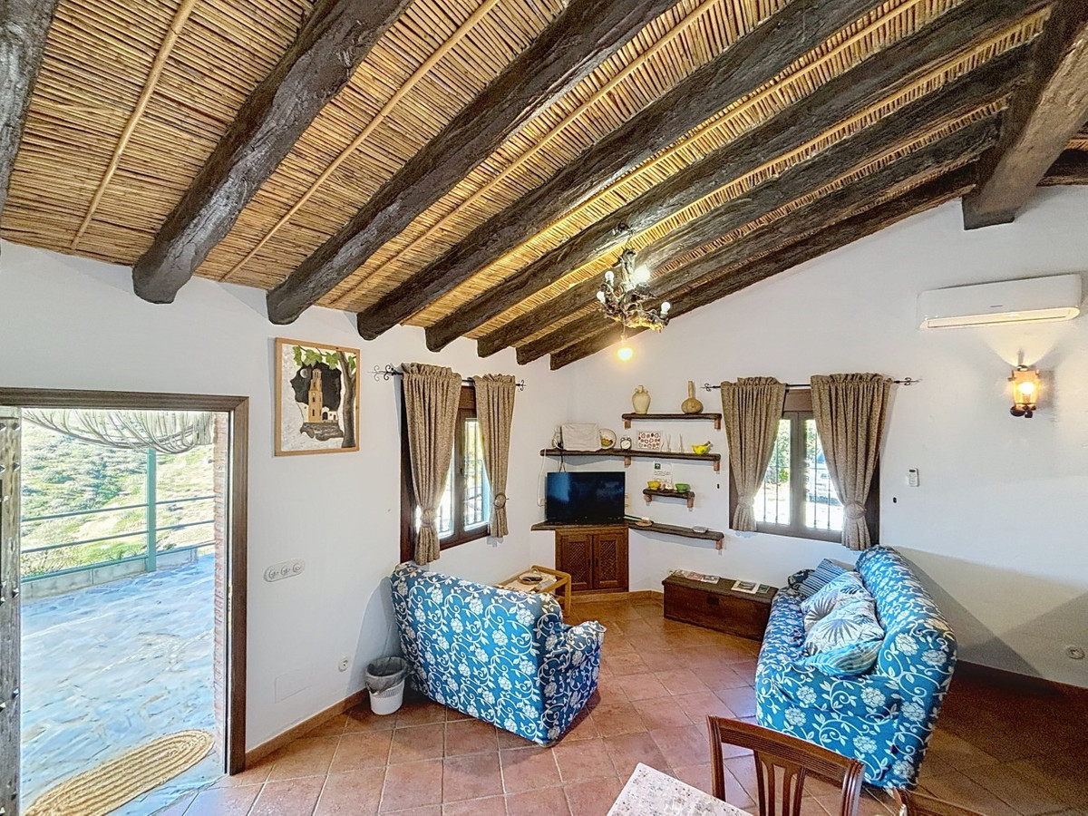 Nestled in the gentle hills below Cómpeta, with sweeping views of the surrounding mountains, this charming country house in traditional Andalusian style offers a peaceful retreat for nature lovers and those seeking tranquility. The single-storey house features a cosy living and dining area with an adjoining, typically Andalusian kitchen. Three bedrooms, one bathroom, and a separate guest WC provide comfortable space for family or friends. Underfloor heating and air conditioning in the main rooms ensure comfort all year round whether on hot summer days or cooler winter nights. Outside, a spacious covered terrace invites you to relax, while the refreshing pool, additional guest WC, and a small, built-in summer kitchen create the perfect setting for outdoor living and entertaining. The property is set on a natural plot with various fruit trees a beautiful frame for life under the southern sun. An authentic home full of character and modern comforts perfect as a holiday retreat or permanent residence in one of Andalusias most picturesque regions. We are pleased to be able to present this dream property to you soon, either personally or via virtual viewing. Because this world is unique - just like our Axarquía. In Andalusia. On the Costa del Sol. Here, on the sunny side of life...