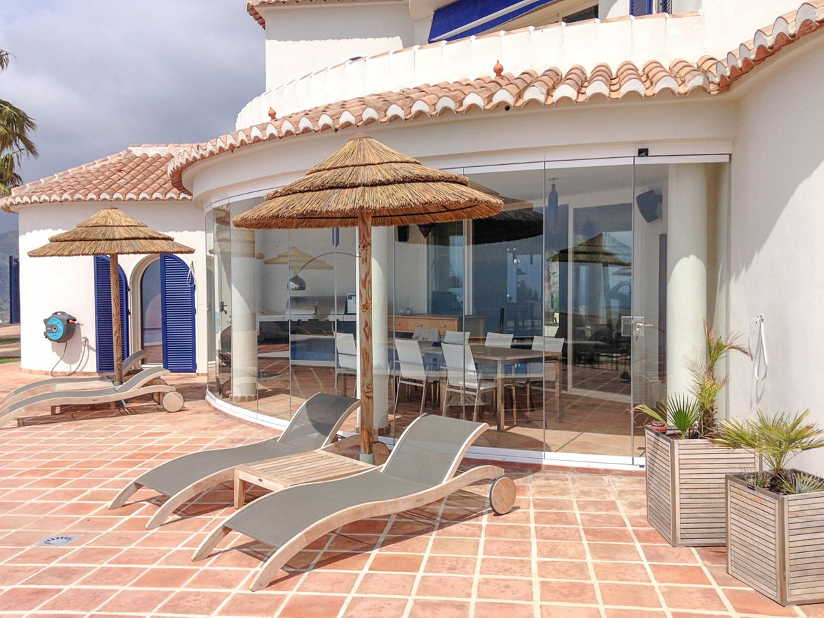 Imagine waking up each day to the soothing embrace of the Mediterranean in this exquisite villa. A true architectural masterpiece, this home offers an unparalleled lifestyle, seamlessly combining spacious interiors with awe-inspiring vistas that stretch all the way to the horizon. The living area welcomes you with an abundance of natural light, thanks to floor-to-ceiling sliding glass doors that perfectly frame the mesmerizing views of the azure sea. The open-plan design creates an ideal flow for both intimate gatherings and grand entertaining, blurring the lines between indoor luxury and outdoor paradise. For the culinary enthusiast, the gourmet kitchen is a dream come true, equipped with state-of-the-art appliances and ample space for creating memorable meals. Dine al fresco on the expansive terrace, where the gentle sea breeze enhances every moment. The lavish master suite, spanning 32.5 m2, offers a tranquil retreat with panoramic ocean views. Start your day in the spa-like bathroom, a true testament to luxury and comfort. The private balcony ideal for sipping morning coffee or enjoying an evening cocktail as you watch the sun dip into the sea. At the outside, the terracotta-tiled outdoor terrace is your personal oasis. Bask in the warm Spanish sun, host unforgettable parties, or simply lose yourself in the mesmerizing views of the coastline. Beyond the beauty, this villa offers a rare opportunity for those looking to start a business, like a B&B. With 4 rentable rooms, each with its own bathroom and entrance, the property has already been successfully operated as a B&B, receiving only glowing reviews. In addition to the rental rooms, theres a private bedroom on the first floor with its own bathroom, and another bedroom with a bathroom in the basement. The fully equipped kitchen inside and the wonderful outdoor kitchen provide all the necessary amenities for running a successful business, while the large underground garage offers plenty of space for storage. Located in Algarrobo, Málaga, this property ensures easy access to world-class amenities, pristine beaches, and rich cultural experiences, all while offering the perfect setting to indulge in Mediterranean living. Whether you're looking for a luxury family home, a business opportunity, or simply a slice of paradise, this villa delivers on every front. This is more than just a home; its a lifestyle. Embrace the pinnacle of Mediterranean living in this extraordinary villayour dream of owning a piece of paradise is now within reach. Dont miss the chance to elevate your life to new heights of luxury, beauty, and opportunity. We are pleased to be able to present this dream property to you soon, either personally or via virtual viewing. Because this world, it is unique - just like our Axarquía. In Andalusia. On the Costa del Sol. Here, on the sunny side of life...