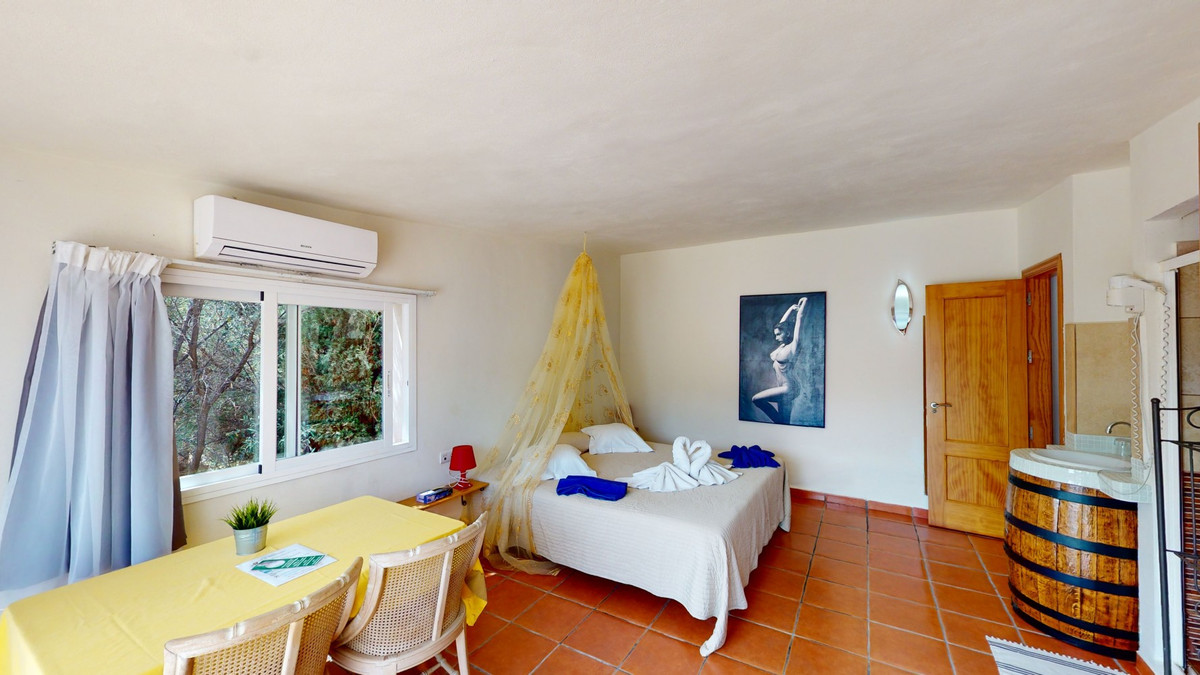 Unique finca close to the sea - Tourist rental and private living, here everything is possible. They have become scarce, the true, authentic and unique fincas on the Costa del Sol, only because of their impressive size and resulting almost unlimited possibilities. But they still exist - as here between Velez-Malaga and Arenas in the heart of the Axarquia. . . and yet only a few minutes by car from the sea. An ideal property, marketed exclusively by Casa & Terreno, for private individuals and investors alike: whether as a country hotel, bed & breakfast or horse farm. This stately estate is reached by a short concrete road, away from stress and traffic. On 140,000 square meters of land, we have a built area of 1,500 m2, 13 complete studios, 2 separate apartments and horse stable - a unique in the south of Spain. There are several buildings on the terrain. The total area of usable residential units is about 920 m2. In addition, there are about 340 m2 of storage space, a sauna, and the pools. Other highlights of the finca, which is only 40 minutes away from Malaga airport, are a large pool of about 8x15 meters with adjacent Jacuzzi and a large BBQ area, another pool of about 3x8 meters with panoramic views over the Mediterranean Sea, a fully equipped commercial kitchen, a bar area that is also fully equipped and private parking for more than 30 vehicles. Everything ready to go! The property has a fantastic southern exposure and therefore sun all day, also the fantastic sea view can be enjoyed from the whole finca. To the beach you need just 15 minutes. The apartments are in the upper part of the finca and can be used commercially or privately, there is also the second pool. The property is sold with a water right, so there are no problems with that. Here is the place where you can realize yourself in all directions. Events, weddings, corporate parties and B&B. The mix of authentic cortijo style, coupled with modern nuances creates the perfect atmosphere. It is a unique property with multiple levels, lounge areas and special features that are rarely found. We are pleased to be able to present this dream property to you soon, either personally or via virtual viewing. Because this world, it is unique - just like our Axarquía. In Andalusia. On the Costa del Sol. Here, on the sunny side of life...