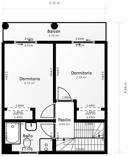 The second floor offers two comfortable bedrooms, both with access to a terrace, as well as a full bathroom.