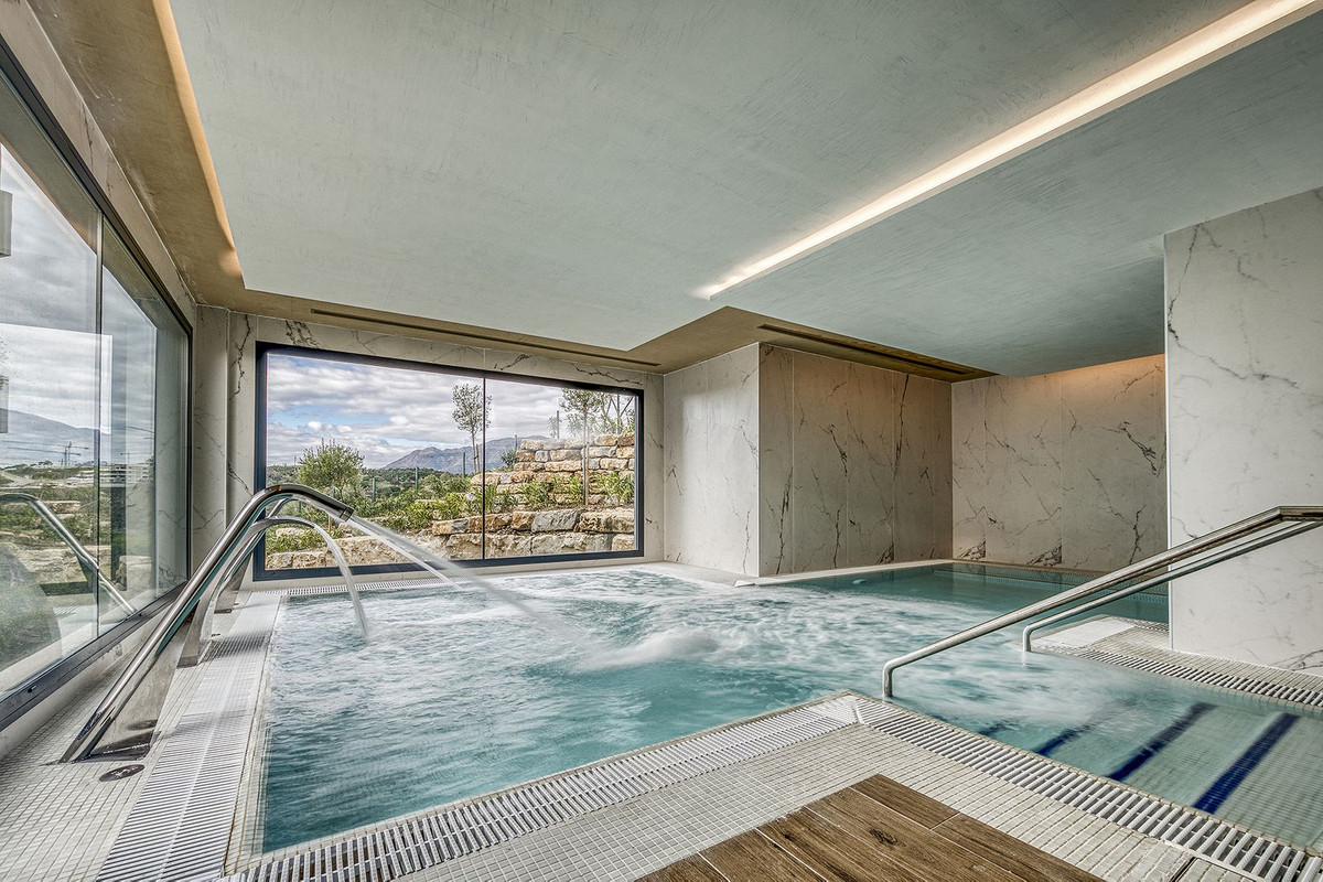 Het complex biedt uitstekende gemeenschappelijke voorzieningen, waaronder een prachtige spa met uitzicht op de omringende natuur, een verwarmd binnenzwembad, een sauna, een hamam en ontspanningsruimtes. Daarnaast kunnen bewoners genieten van een groot buitenzwembad en zorgvuldig aangelegde tuinen die bijdragen aan de exclusieve en rustige levensstijl.