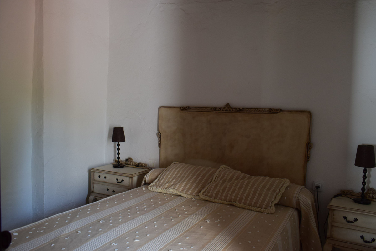 From the kitchen you enter in another corridor at the back, where you find another spacious bedroom, also with the original doors. The corridor gives access to the swimming pool in a private corner of the property.