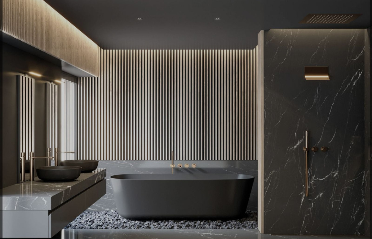 - Bathroom walls with COVERLAM plates (GRESPANIA) 2700X1200 (Color to choose)