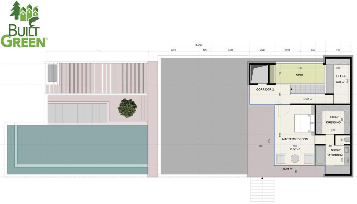 And finally, you have the master bedroom area with an elevator, a double master bedroom, dressing, ensuite bathroom, corridor, office space, and terraces with incredible sea views.