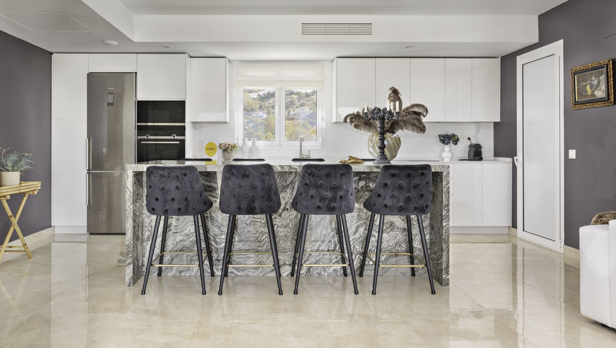 STUNNING Penthouse with panoramic, unobstructed views in the beautiful, newly built Elements gated complex in Altos de Marbella, just an 8-minute drive from alluring beaches and the Marbella arch. This glamorous southwest-oriented home boasts magnificent panoramic views, top-of-the-line amenities, and a sense of luxury & comfort throughout. The house has been upgraded with high-end finishes and is ready to move in, key in hand.