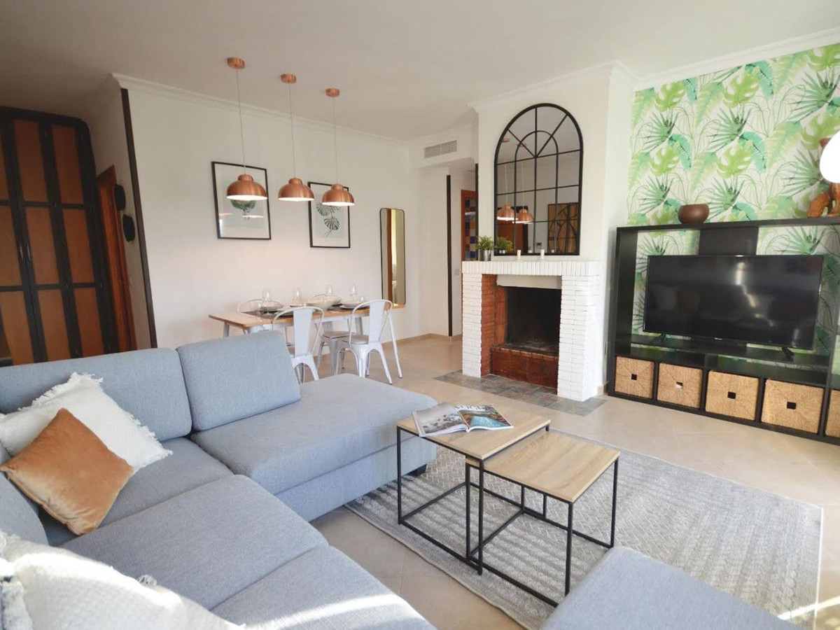 This beautifully decorated two bedroom, two bathroom apartment is located in the very popular Puerto Banus marina in Marbella, just 20 meters from the beach. The views are of the Plaza de Antonio Banderas square which also has the “El Corte Ingles” department store, that focuses on top brands.