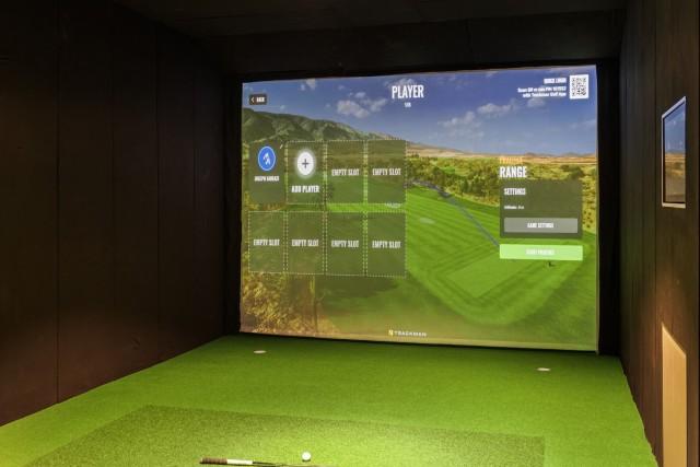 De benedenverdieping versterkt de aantrekkingskracht van de woning verder met een veelzijdige entertainmentruimte, momenteel ingericht als een privé golfsimulator, samen met een beveiligde garage voor drie auto's en extra bergruimte.